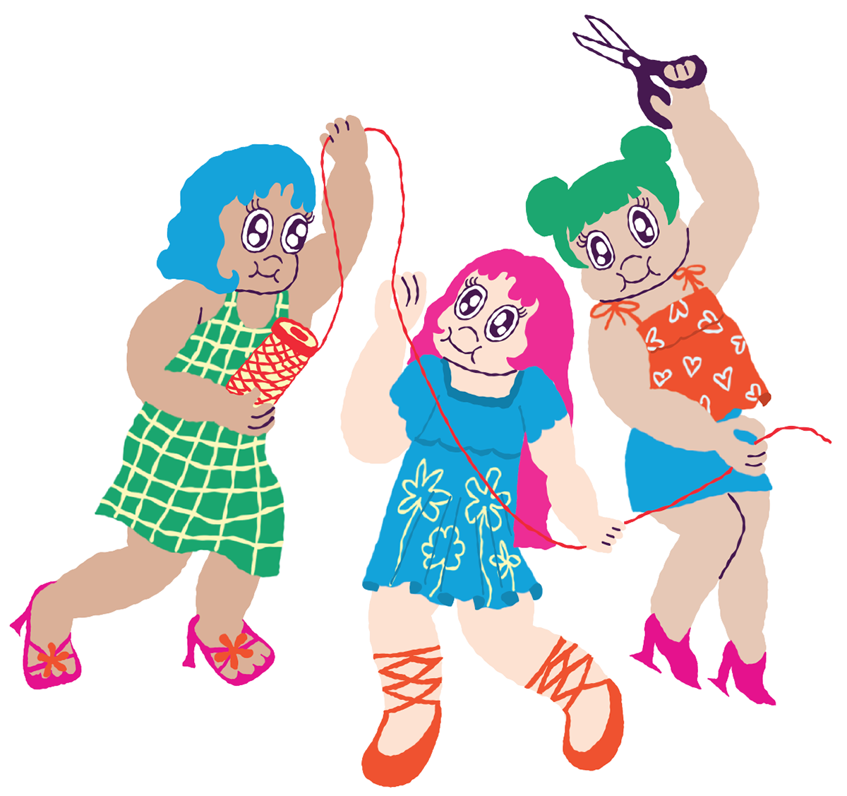 The work depicts the Moirai from Greek mythology, who symbolize the cycle of life. It portrays the three goddesses of fate and destiny: Clotho, who spins the thread of life; Lachesis, who measures the thread; and Atropos, who cuts it, determining the end of one's journey.