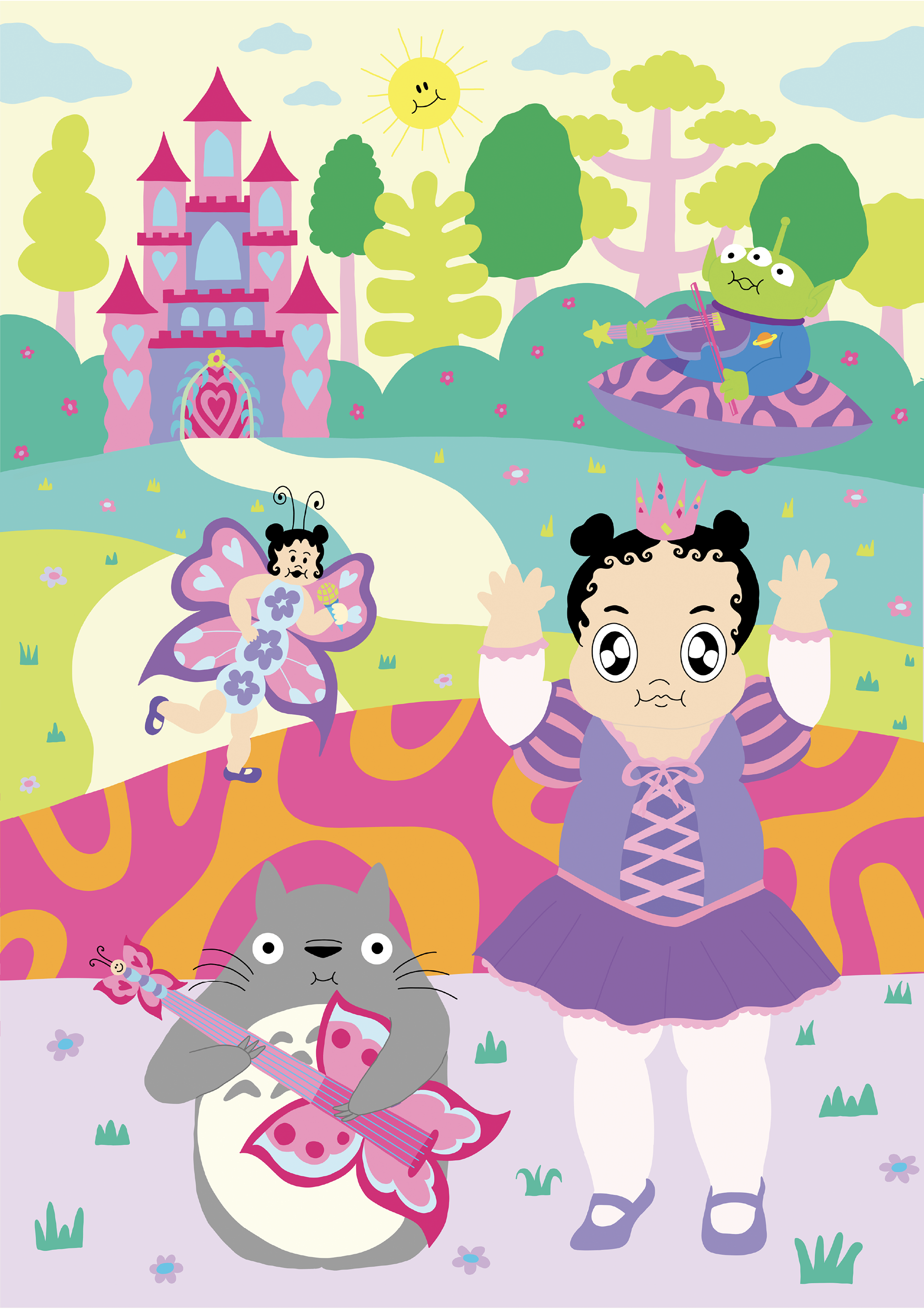 She aspires to be a princess, but at the same time, she wants to be a dancer in a band. The lineup is pretty epic: Totoro on guitar, the Little Green Men on violin, and Fairy Poopyfly as the lead singer.