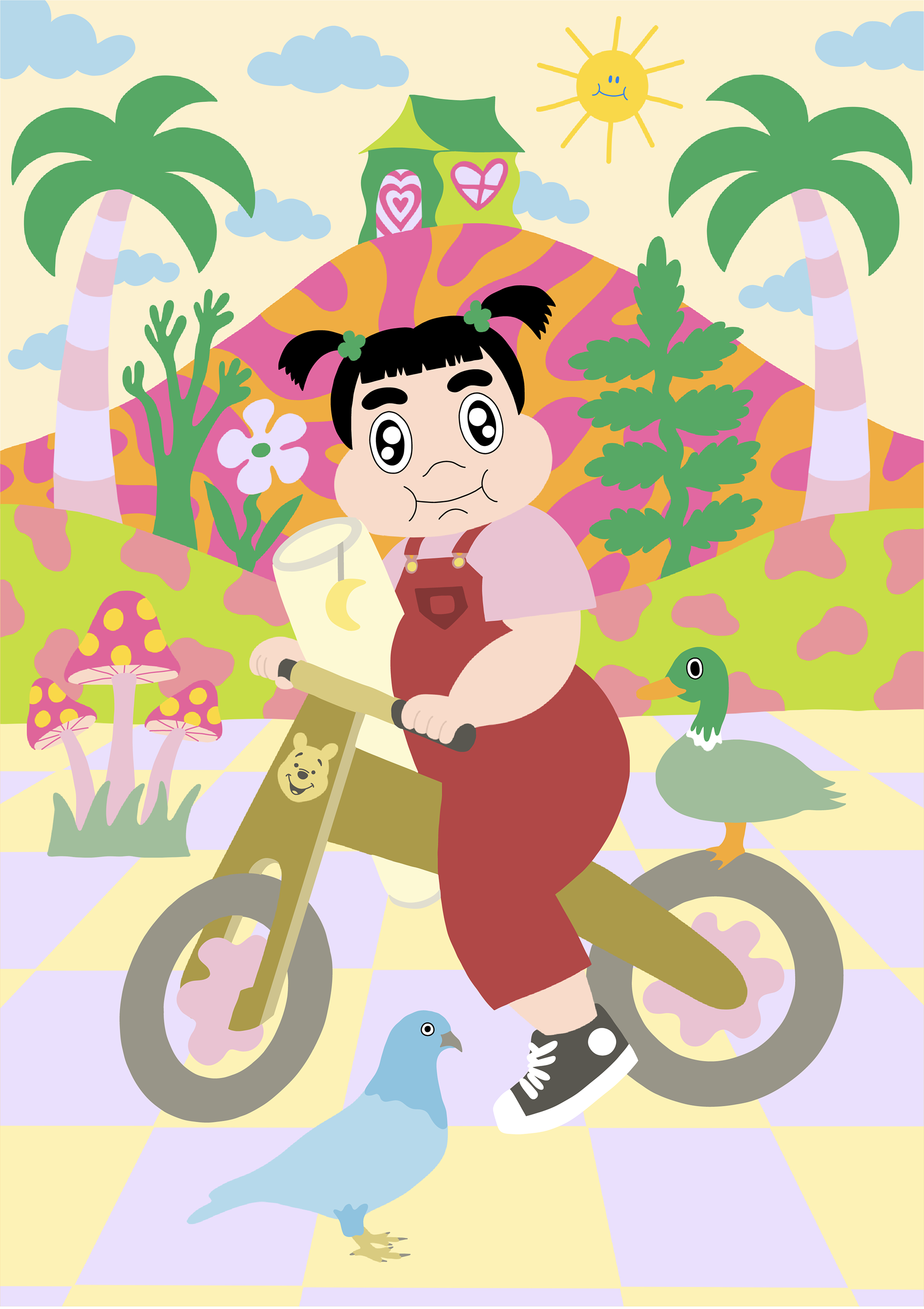Cekay is a toddler living in New Zealand. She loves making friends with pigeons and ducks, and one of her favorite things in the world is her bolster with a little moon charm on it. She takes that bolster everywhere—even when she’s out riding her balance bike!